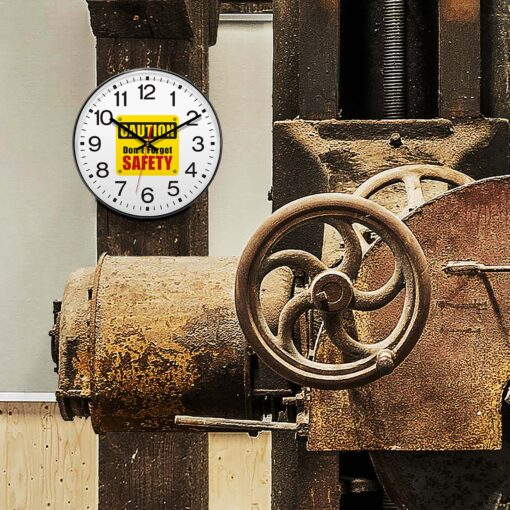 Be the first to review “Caution: Don’t Forget Safety Black Wall Clock 12 in.”