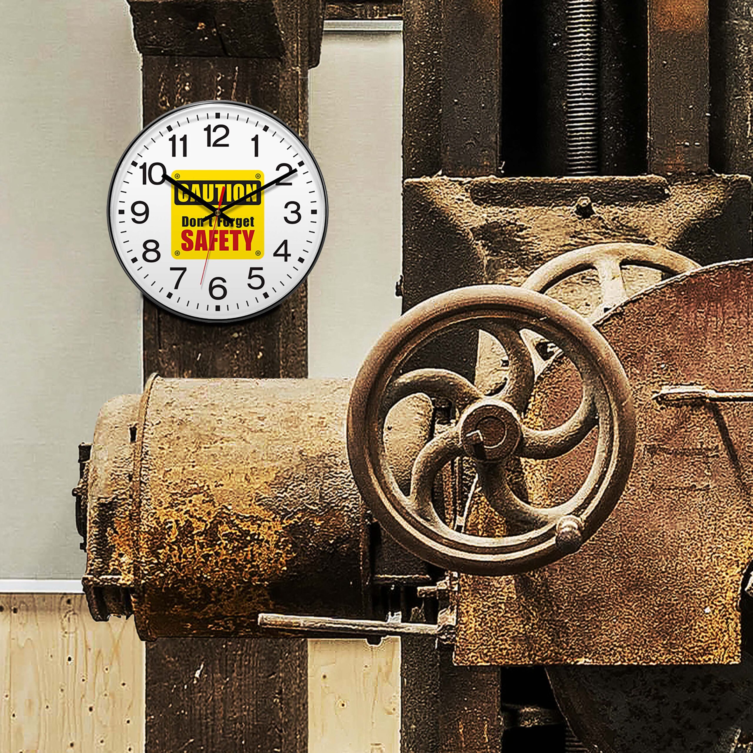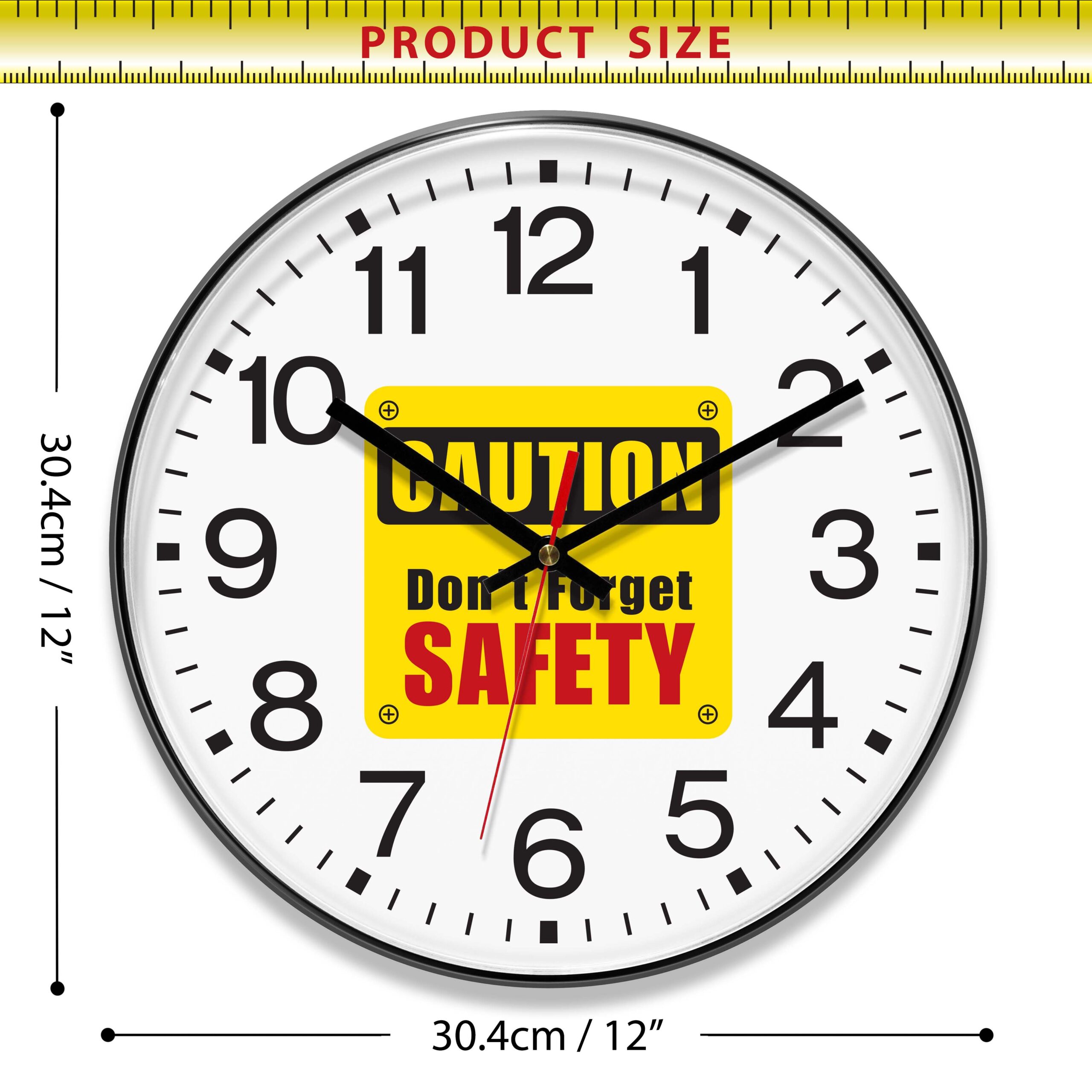 Caution: Don’t Forget Safety Black Wall Clock 12 in.